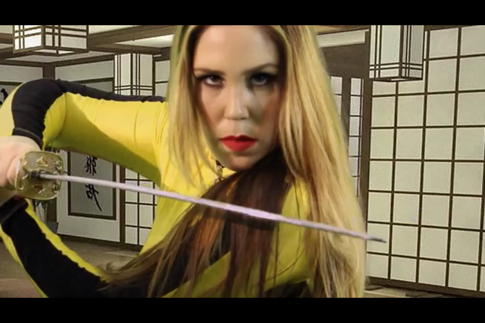 Me: I have to talk about that "Seeing Red" video, it's a spoof on Quentin Tarantino movies. Did you come up with the concept or did someone else?